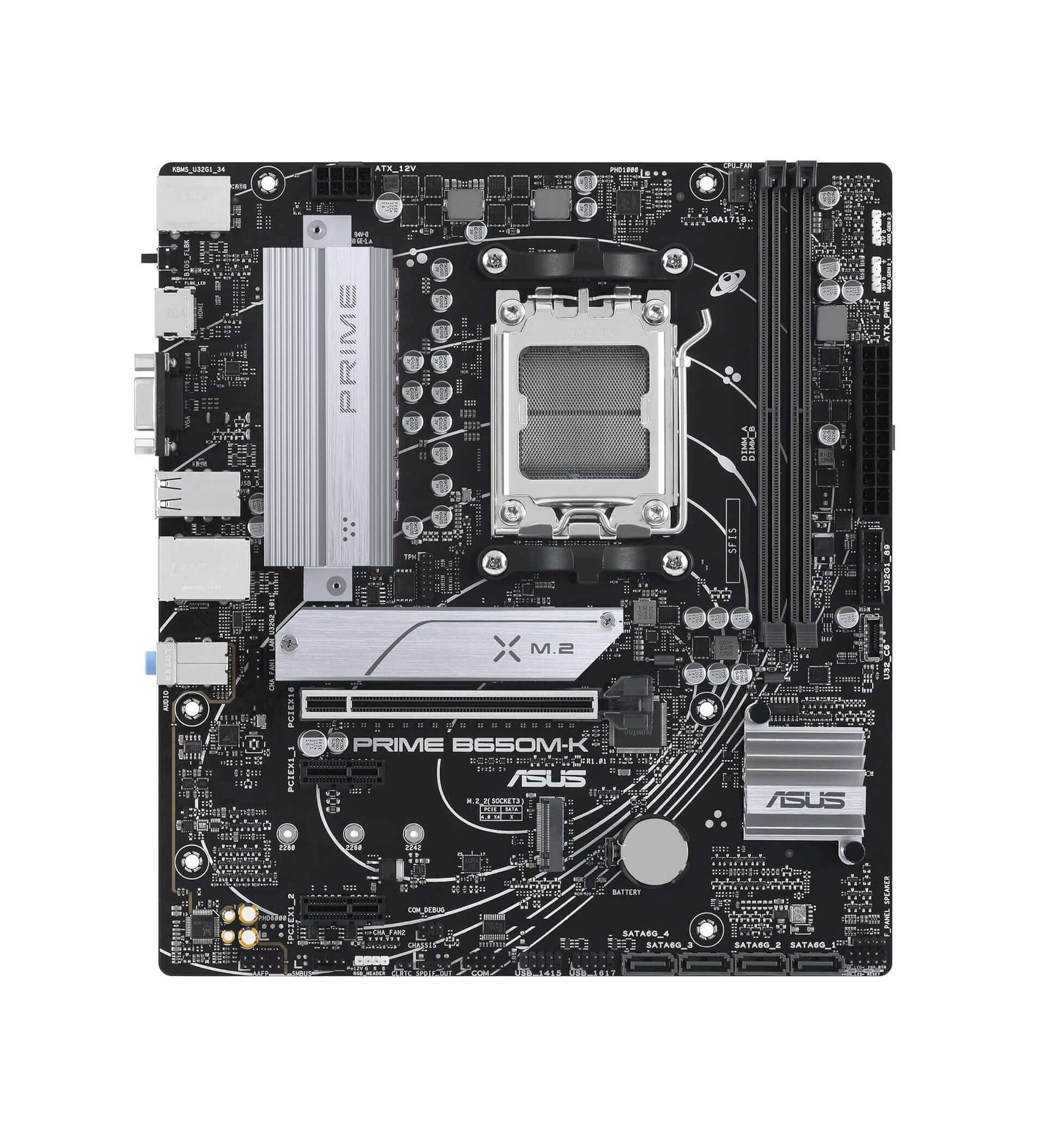 The ASUS Prime B650M-K features DDR5 memory support, PCIe 5.0 slot, and M.2 NVMe SSD compatibility, offering blazing-fast speeds and smooth multitasking. With USB 3.2 Gen 2, HDMI, DisplayPort, and high-quality onboard audio, this motherboard ensures excellent connectivity and immersive experience.