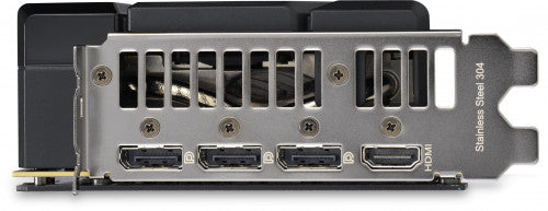 Connectivity is future-proof, with DisplayPort 2.1b ports and HDMI 2.1b, allowing support for 4K/8K displays and high refresh rates. A single 16-pin power connector and recommended PSU of around 750W ensures stable power delivery, especially in overclocked or multi-GPU setups.