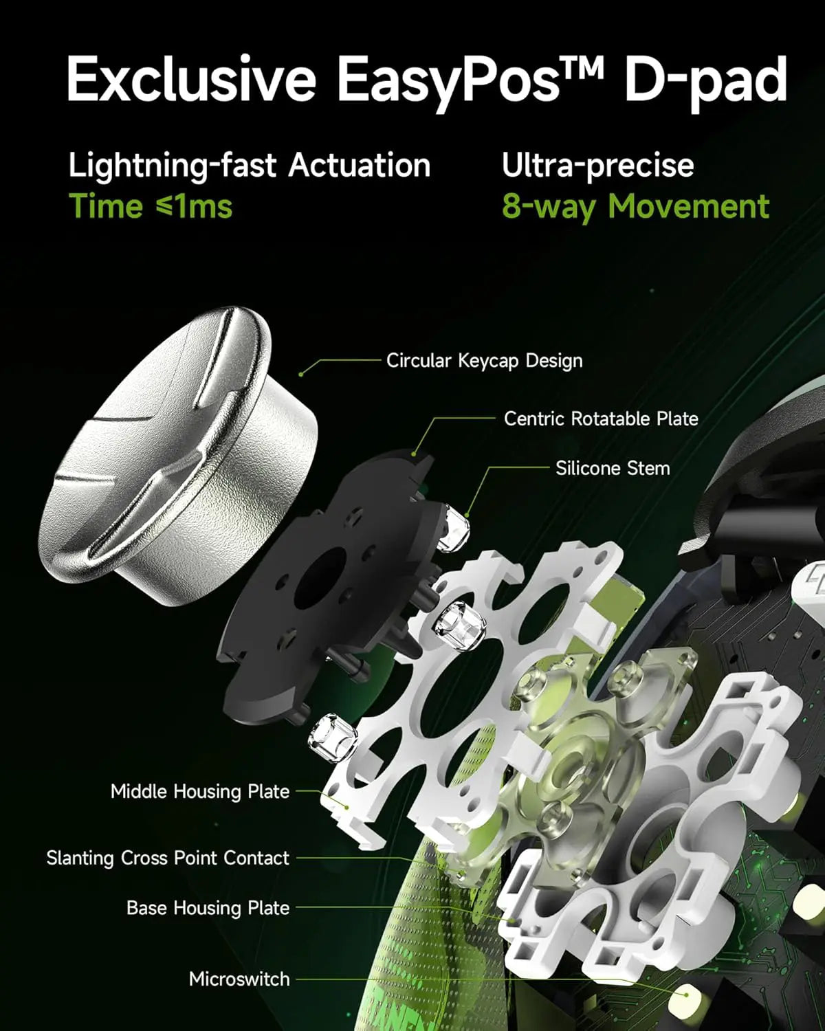 EasySMX D10 Green Wireless Gaming Controller for PC, Switch, Android & iOS | TMR Anti-Drift Joysticks, Dual Triggers & Smart Charging Dock
