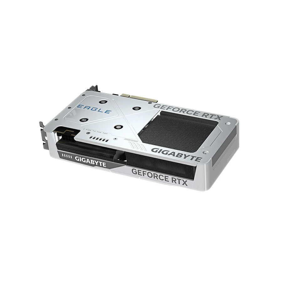 The Gigabyte Eagle White Edition doesn’t just look good — it runs cool and quiet. Equipped with the WINDFORCE cooling system, including three optimized fans, a large copper heat pipe, and alternate spinning technology, this GPU maintains top-tier thermal performance even during long gaming sessions. The durable metal backplate enhances stability while completing the sleek white aesthetic that complements modern PC builds.