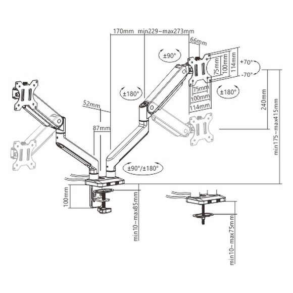 Each arm offers independent tilt, swivel, and rotation adjustment to fine-tune your display angles. The BMA-24U supports 360° rotation, ±90° tilt, and ±180° swivel, ensuring optimal comfort whether you’re multitasking, editing videos, or gaming intensely.