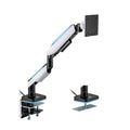 The MXG HMA-12R Heavy Duty RGB Gaming Monitor Arm Matte White is a fusion of style, strength, and precision. Designed for gamers and professionals alike, it features a built-in RGB lighting system, robust gas-spring mechanics, and 360-degree adjustability for ultimate ergonomic comfort and desk organization.
