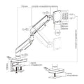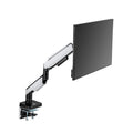 The arm supports both C-clamp and grommet mounting options, ensuring compatibility with most desks. It fits standard VESA 75×75 mm and 100×100 mm monitor brackets and supports screens from 17" to 34" in size.