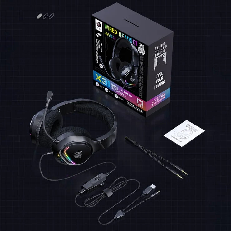 Onikuma X31 Gaming Headset Price in Pakistan | 7.1 Surround Sound, RGB Lighting, Noise-Canceling Mic & Comfortable Fit