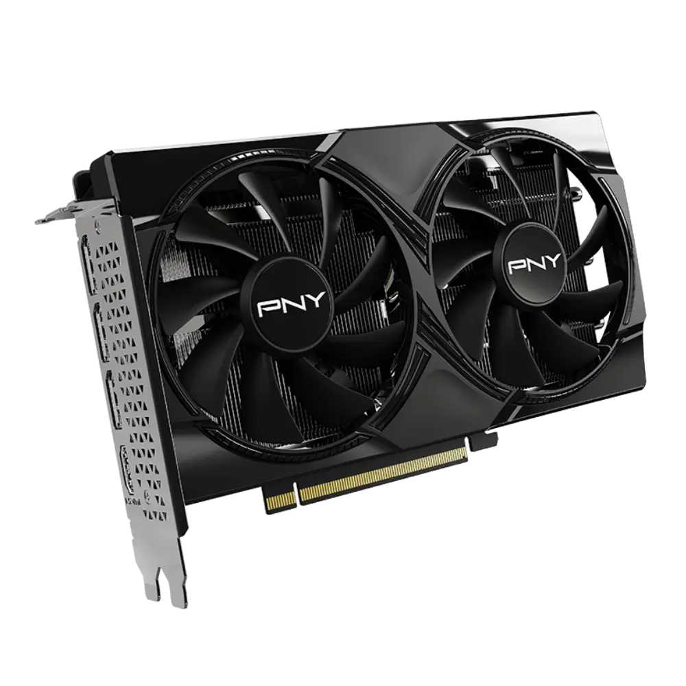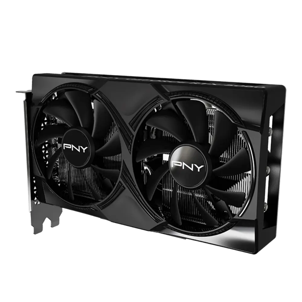 PNY’s cooling system features a dual-fan design with a premium heatsink for effective heat dissipation, ensuring optimal thermal performance even during long gaming marathons. The card operates on a 145W TDP, powered by a single 8-pin connector, making it efficient yet powerful for modern systems.