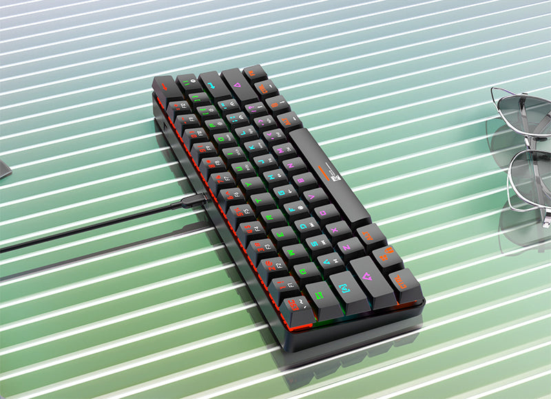 The R8 AK61 RGB Mechanical Gaming Keyboard packs full-size performance into a sleek 60% compact design, giving you more desk space for swift mouse movements and a clean, modern setup. Perfect for gamers, streamers, and creators who want power without clutter.