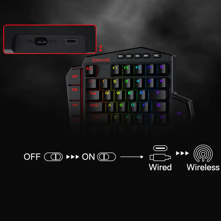 Redragon Diti Elite – RGB Wireless One-Handed Gaming Keyboard (Black)